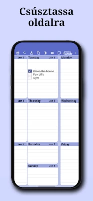 Képzelje el a hetet egy pillantással! Fedezze fel a stresszmentes szervezés új dimenzióját egy letisztult, átlátható heti nézet segítségével, amely egyetlen képernyőn tárja elénk teendőit. Intuitív mozdulatokkal lapozhat a hetek között, így a jövő tervezése és a múlt áttekintése sosem volt még ennyire egyszerű. Mostantól napirendje és közelgő feladatai mindig kéznél lesznek, átláthatóan és könnyedén kezelhetően.