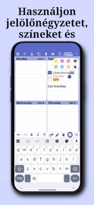Használja ki a különálló jegyzetek funkciót gyors ötletek vagy fontos információk rögzítésére, vagy alakítsa személyes naplójává. Tervezze meg ideális napi rutináját, és a beépített szokáskövető segítségével építsen ki tartós, pozitív szokásokat. Soha többé ne maradjon le semmiről: állítson be egyedi emlékeztetőket és értesítéseket minden fontos eseményhez, feladathoz vagy határidőhöz. Magas szinten testreszabható felületével alkalmazkodik az Ön stílusához, sőt, megosztási lehetőségeivel a közös munka is gördülékennyé válik. Automatikus biztonsági mentések gondoskodnak a nyugalmáról, míg a praktikus widgetek azonnali hozzáférést biztosítanak ütemtervéhez és feladataihoz.