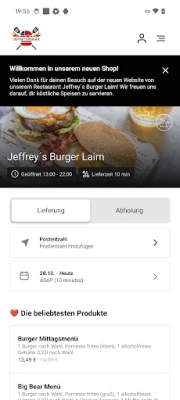 Rendelj egyszerűen a Jeffrey´s Burger Laim applikációval! Támogasd kedvenc éttermed, felejtsd el a papír menüket, és alakítsd kedvedre ételeidet. Válaszd ki a számodra tökéletes szállítási időt, mindezt kényelmesen, telefonhívások nélkül. Élvezd a gyors és személyre szabott rendelést!